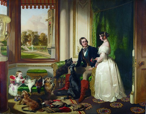 ROC399178 Windsor Castle in modern time; Queen Victoria, Prince Albert and Victoria, Princess Royal, 1840-43 (oil on canvas) by Landseer, Edwin (1802-73); 113.3×144.5 cm; Royal Collection Trust ¬© Her Majesty Queen Elizabeth II, 2016; (add.info.: Queen Victoria (1819-1901) Queen Regnant, and Prince Albert (1819-61); Princess Victoria (1840-1901); set in the White Drawing Room at Windsor; a view of the East Terrace, upon which Queen Victoria’s mother, the Duchess of Kent, is seen enjoying a circuit in a bath chair;); REPRODUCTION PERMISSION REQUIRED; English, out of copyright